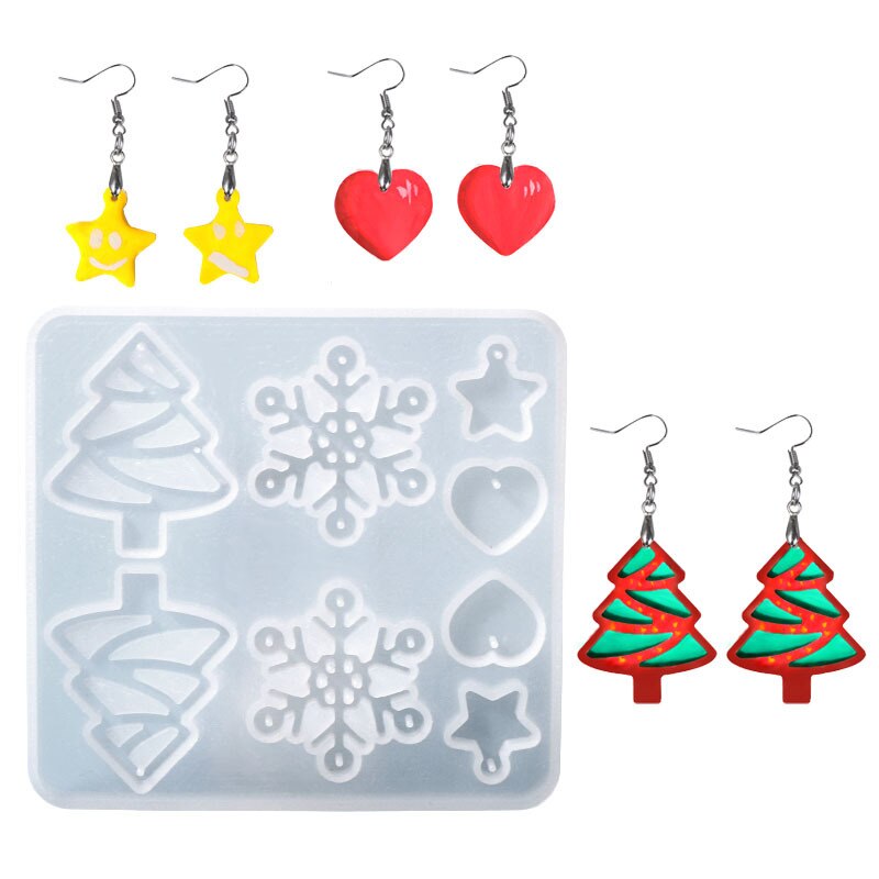 1PCS Christmas Ear Studs Resin Mold Crystal Epoxy Resin Mold Mini Heart Shaped Animal Mold DIY Craft Jewelry Earring Making Tool