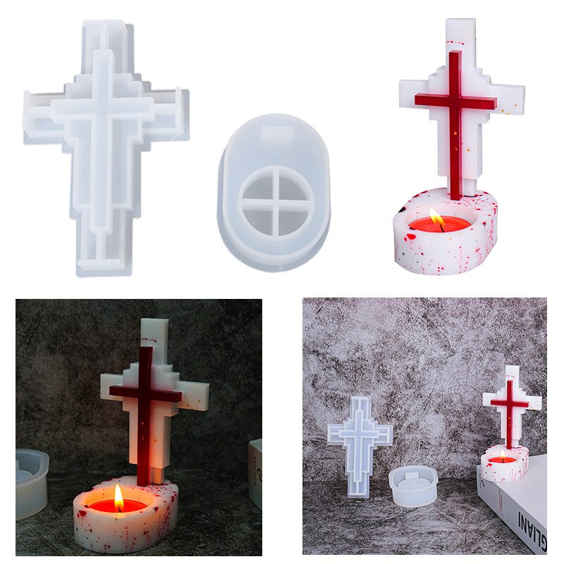 DIY Cross Candlestick Silicone Mold 3D Handmade Epoxy Resin Plaster Craft Candle Holder Casting Molds Xmas Gift Shape Home Decor
