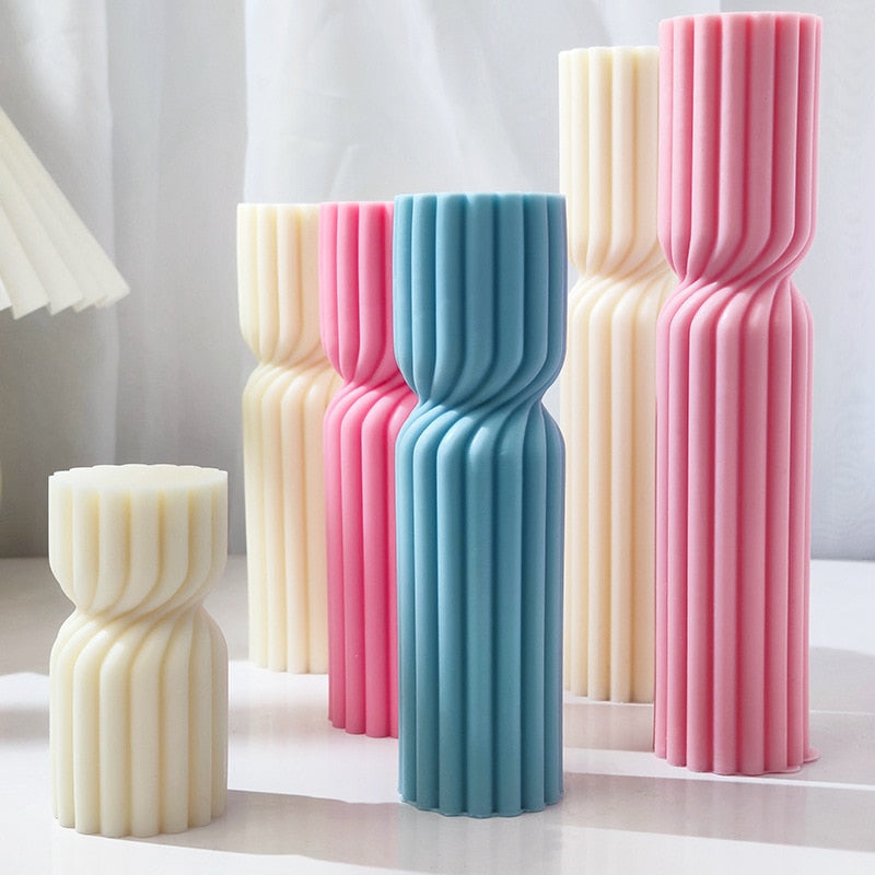 DIY New Cylindrical Tall Twirl Pillar Candle Mold Ribbed Aesthetic Twist Swirl Silicone Mould Geometric Striped Soy Wax Mold