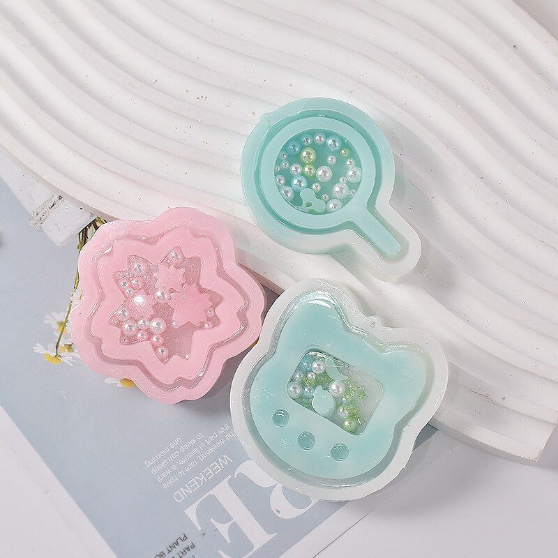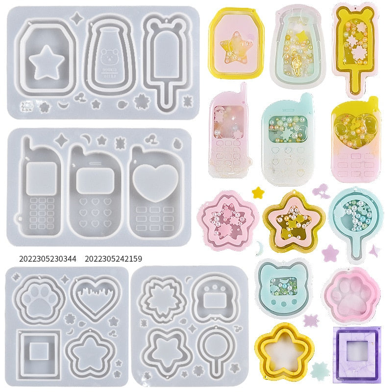 DIY Quicksand Silicone Epoxy Resin Mold Phone Love Flower Cat Claw Keychain Shaker Epoxy Resin Mold Craft Tools Jewelry Supplie