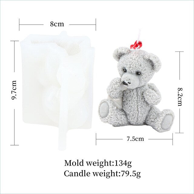 Large 3D Cute teddy animal bear candle silicone mold bear father mother cake chocolate silicone mold soap mold home decoration