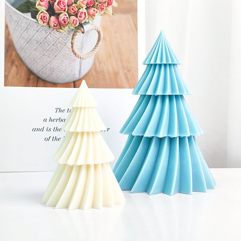 Large Geometric Spinning Pine Silicone Candle Mold Handmade Christmas Tree Aromatherapy Gypsum Resin Soap Mould Home Decor Gifts