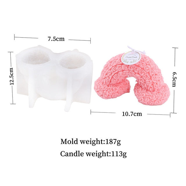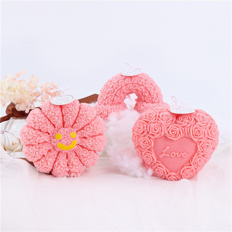 LOVE Rose Ball Candle Silicone Mold Rose Rainbow Chocolate Cake Mold Flower Heart Soap Silicone Mold Valentine's Day Gift Crafts