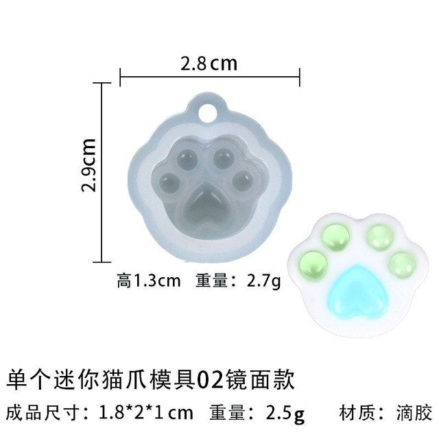 Mini Cat Paw Pendant Silicone Mold Keychain Pendants Epoxy Resin Molds for DIY Epoxy Resin Crafting Mould Jewelry Making Crasfs