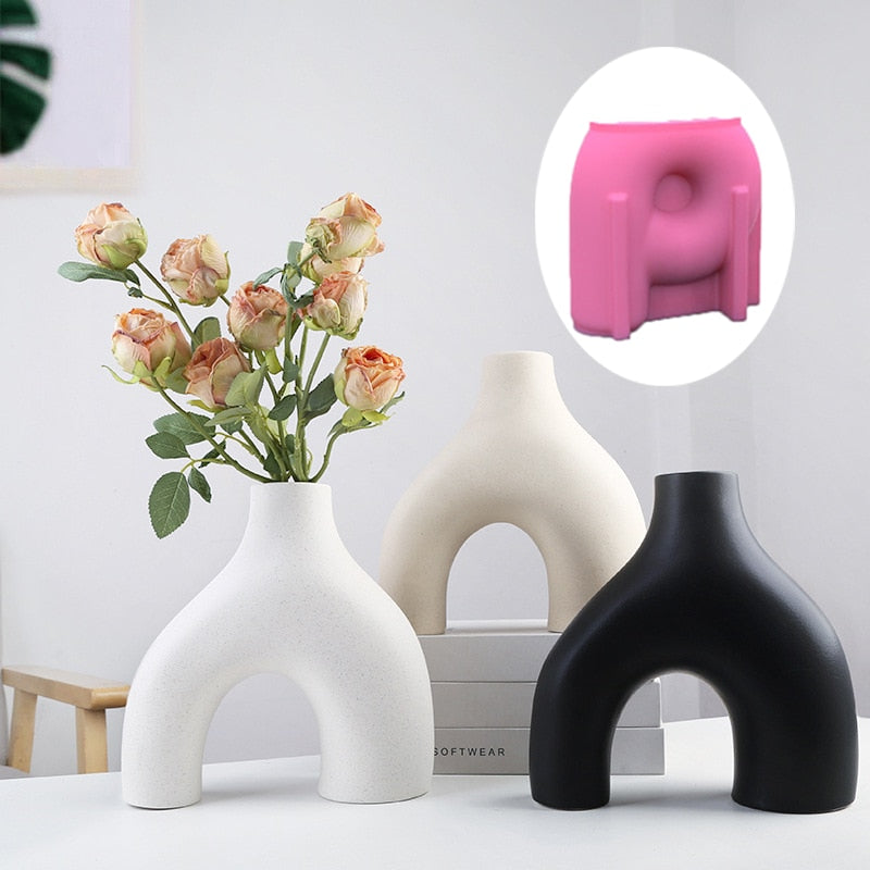 New Household Vase Shape Succulent Flower Pot Ashtray Pen Holder Silicone Mold Scented Molds For Gypsum and Concrete Stone Carve