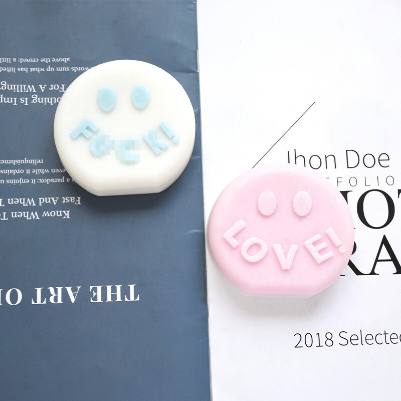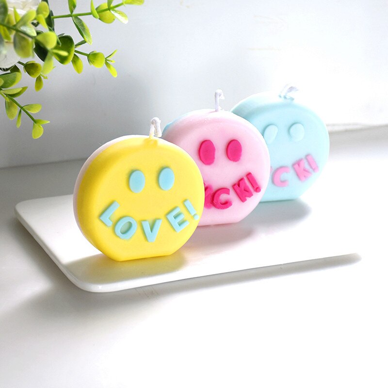 Smiling face love letter slogan candle silicone mold funny slogan round cake face candle silicone mold cake chocolate soap mold