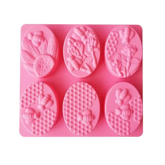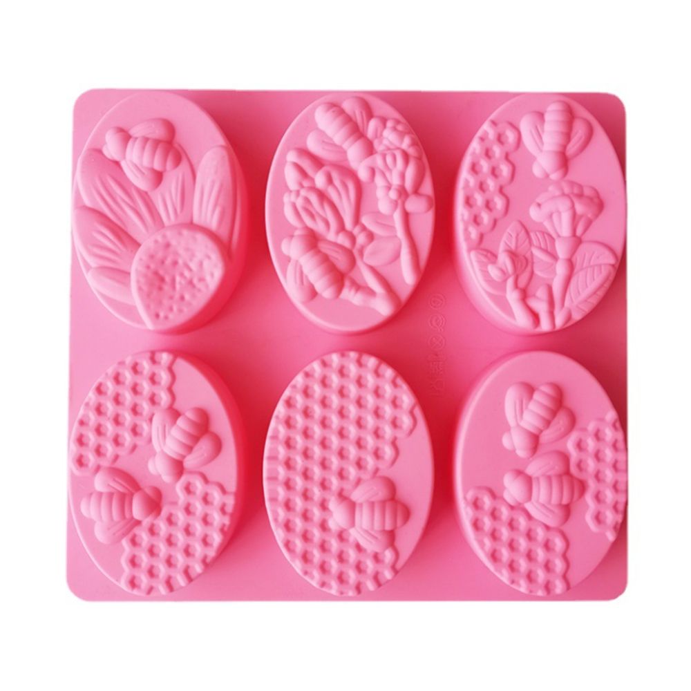 Name: 6 Cavities Bee Oval Honeycomb Silicone Soap Mold
